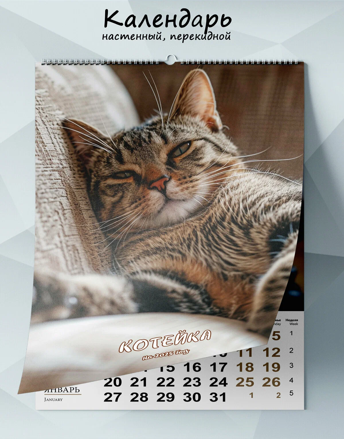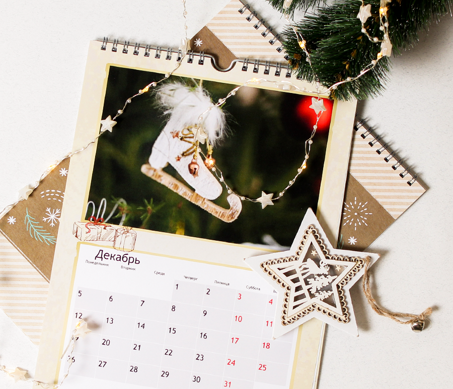 В перекидном календаре с личным дизайном можно использовать мотивирующие изображения, различные цитаты, подходящие по тематике фотографии. Текст и даты также могут быть оформлены по-разному для соблюдения единого стиля, в том числе корпоративного.