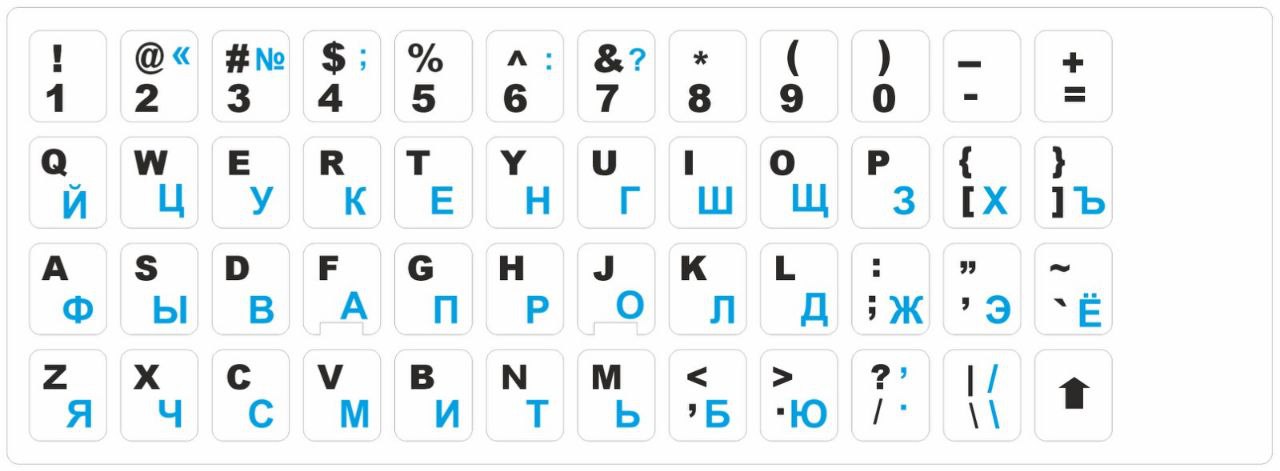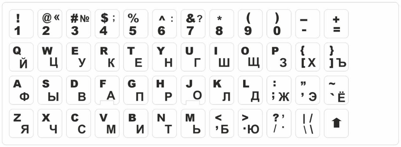 Во всех перечисленных случаях для покупки доступны наклейки на клавиатуру с русскими буквами и кириллицей. Это упрощает ввод информации на разных языках. Наклейки должны быть чуть меньше клавиш по размеру. Также важно помнить, что кнопки клавиатуры бывают различной формы, от традиционной квадратной или прямоугольной до закругленной и овальной.
