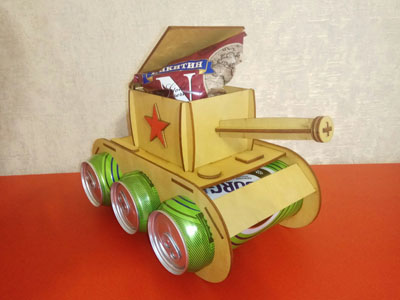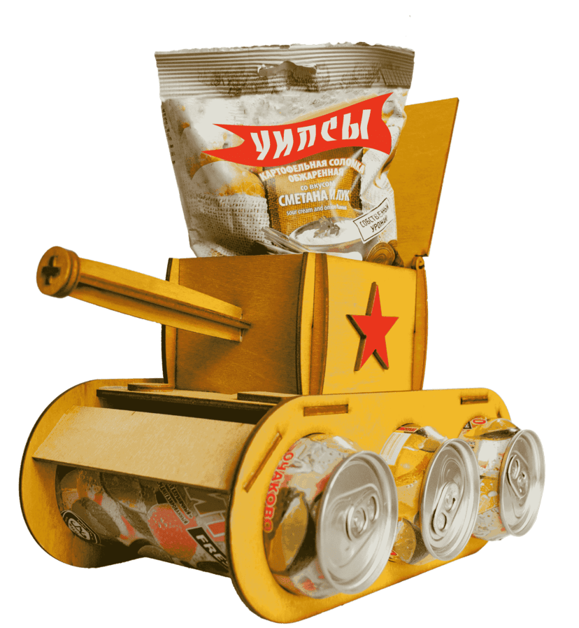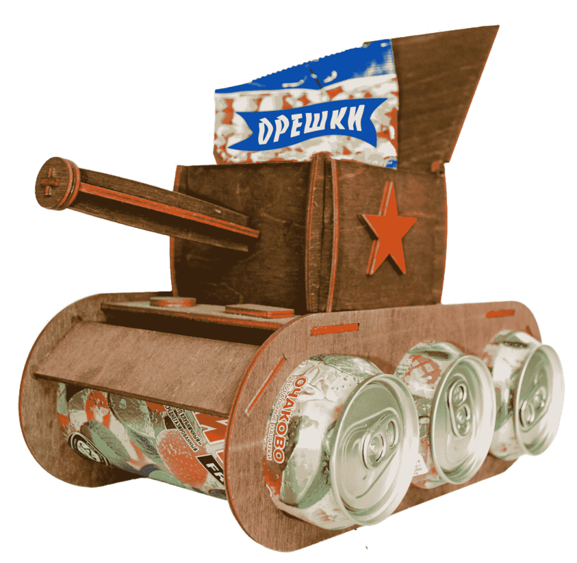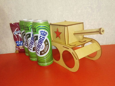 В Минске деревянный танк под пиво можно купить во многих магазинах и заказать через интернет. Покупая такую декоративную упаковку для пенного у нас, Вы можете быть уверены, что покупаете у прямого производителя по самым низким ценам, танки будут уже в собранном виде, останется всего-то вставить банки с пивом и закинуть орешки в башню танка. При покупке танков к 23 февраля в нашей организации, мы организуем доставку в удобное для Вас время и место. По Вашему желанию, упакуем танки в вакуумную упаковку со всем содержимым и наклеим красивый стикер с пожеланием для мужчин.